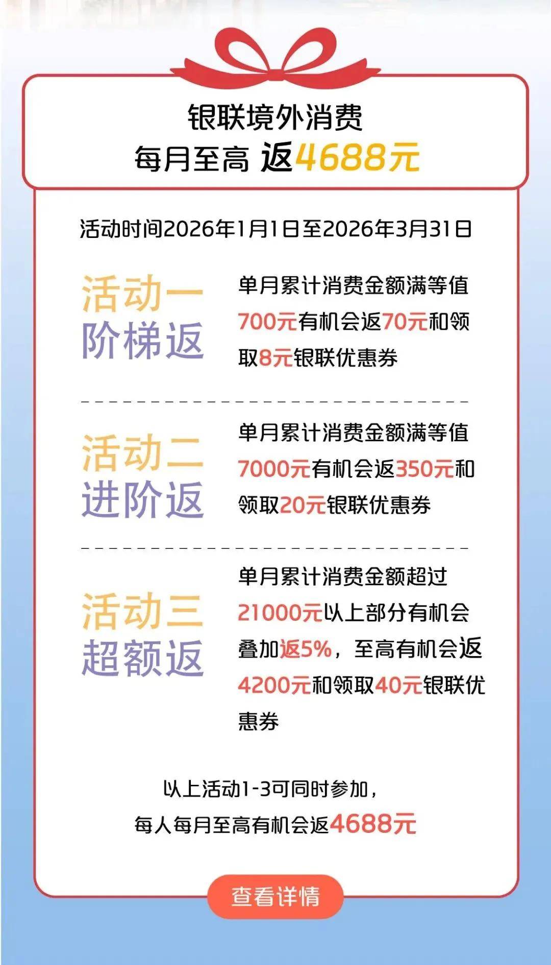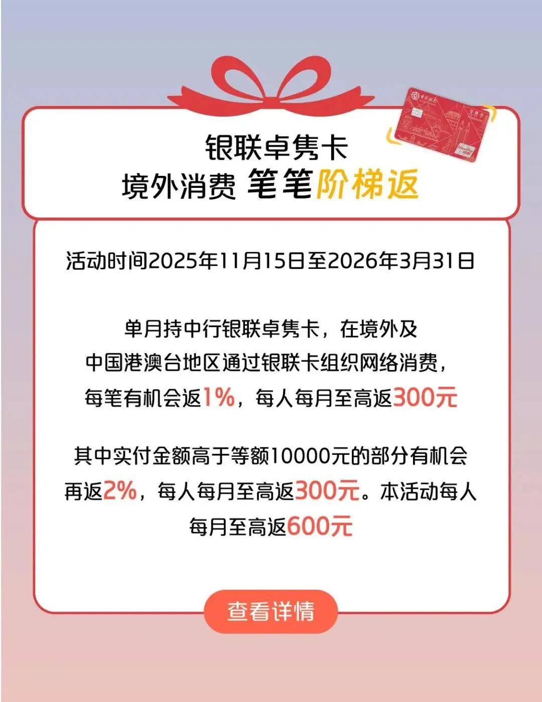 中行泰安分行:每月至高返6788元,境外消费礼遇升级!