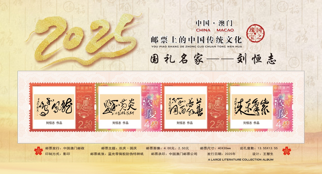 2025年分别发行:邮票上的中国传统文化《国礼艺术名家——刘恒志》邮票、《国之瑰宝》邮票、《巳巳如意》邮票。