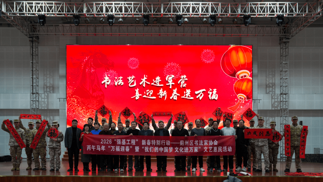 龙蛇交替迎新岁,翰墨飘香润民心。2026 年元旦至春节期间,蓟州区书法家协会紧扣 “强基工程” 部署,以丙午马年 “万福迎春” 暨 “我们的中国梦 文化进万家” 为主题,开展系列文艺惠民行动。从京津冀三地联动到城乡社区深耕,从军营院校到集市车站,30 余个活动点位遍布蓟州及周边区域,累计送出春联福字万余幅,让传统书法艺术与新春祝福走进千家万户,为马年新春注入浓厚文化年味。