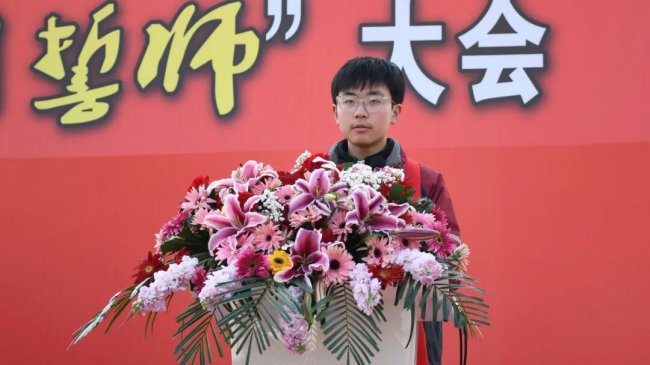 随后,龚鹏程校长等校领导为受表彰集体与个人颁奖:授予初一Ⅰ部(6)班等37个班级“周恩来班”荣誉称号,表彰杨宇泽、范奕然等695名明星学生。