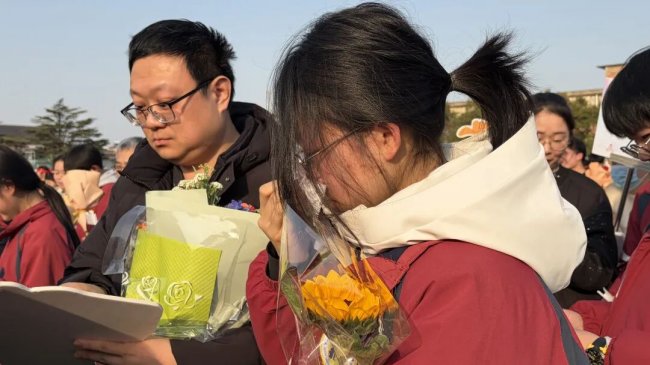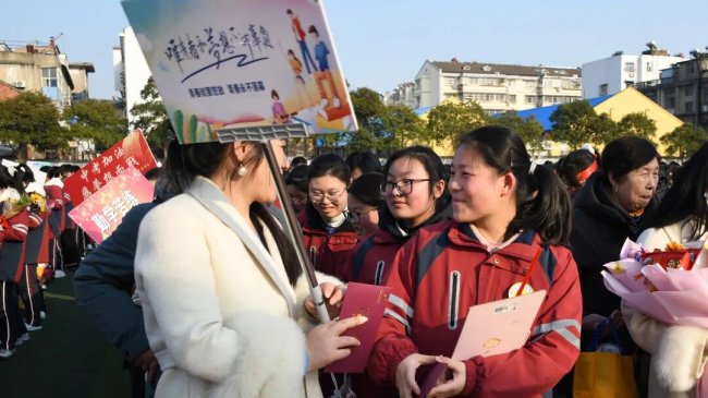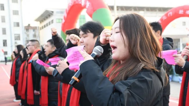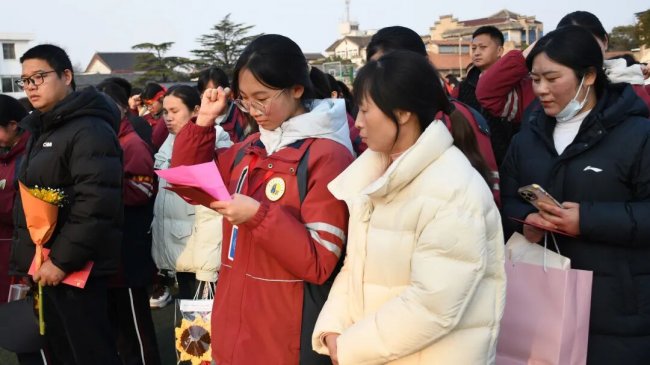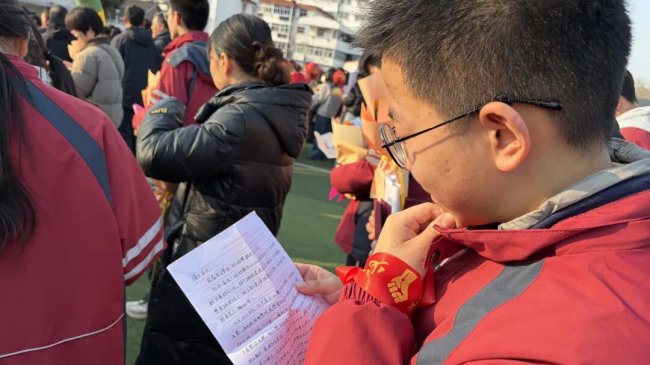 旌旗猎猎,战鼓催征。授旗仪式上,班级战旗有序传递,旗帜闪耀班级的荣光,凝聚奋力拼搏的坚定目标;诗朗诵《百日砺剑 逐梦青春》中,老师们以温暖而铿锵的声音,为初三学子加油鼓劲;教师寄语环节,尽显全体教师众志成城、同心聚力的责任与担当。