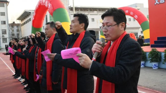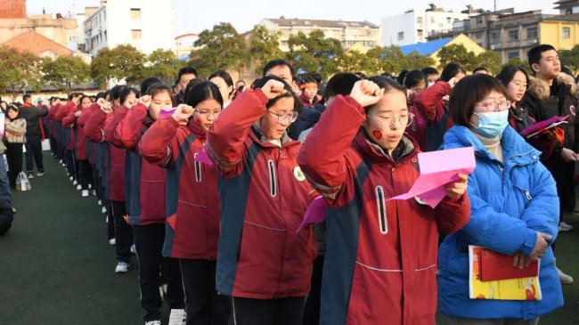 集体宣誓仪式上,同学们斗志昂扬、意气风发,展现出决胜中考的豪情壮志。