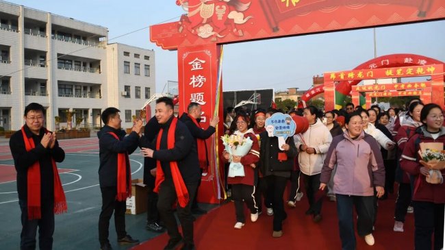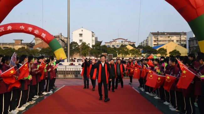 17时08分,全体初三教师整齐列队,在龚鹏程校长、王润洲副校长、王成美副校长、王永利主任等领导的带领下,昂首踏上红毯,携手跨越成功之门。