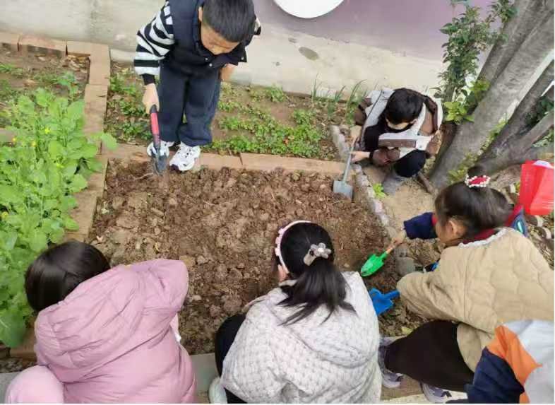 老师们也化身“绿色引路人”,带着孩子们整理绿地、清理杂草、呵护绿植,弯腰、松土、整理,每一个动作都认真而专注。孩子们在劳动中感受自然之美,体会劳动的快乐,在小手与绿意的相伴中,懂得珍惜生命、爱护环境。
