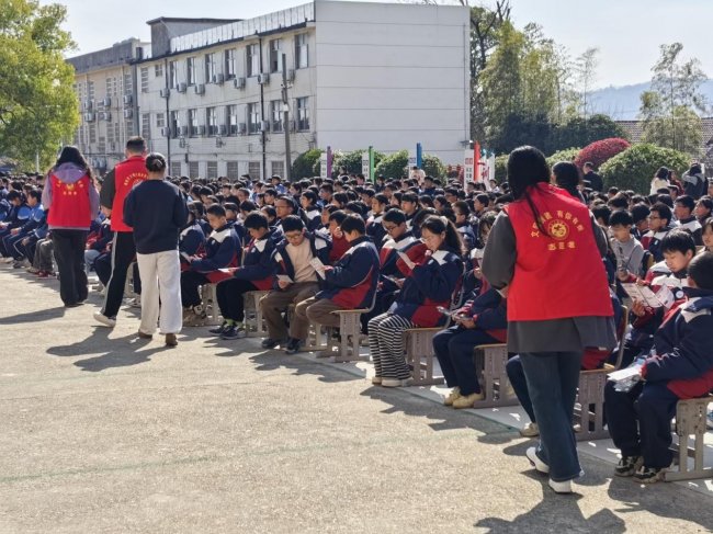 本次讲座内容丰富,涵盖法制知识、防性侵知识、防校园霸凌知识三大主题。东山镇派出所教导员结合一线工作经验,通过真实案例以案释法,重点围绕防性侵、防校园霸凌等内容展开宣讲,教导学生如何识别潜在危险、如何自我保护以及在遇到侵害时如何正确应对、及时求助。东山镇法庭工作人员则聚焦未成年人保护相关法律法规,深入浅出地讲解了未成年人保护法、预防未成年人犯罪法等内容,帮助学生了解法律赋予的权利和义务,树立尊法学法守法用法的法治观念。 活动现场气氛热烈,工作人员与学生们积极互动。来自镇平安办、宣传办和妇联的志愿者们还在现场发放了法制宣传单、未成年人自护手册、“扫黄打非”知识折页等宣传资料,进一步扩大宣传覆盖面,帮助学生巩固所学知识。学生们认真翻阅宣传资料,纷纷表示通过此次讲座学到了很多实用的法律知识和自护技巧,今后要自觉遵守法律法规,坚决抵制校园霸凌,做知法、懂法、守法、自护的好少年。