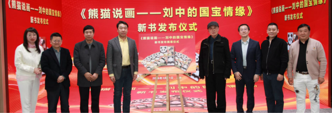 《熊猫说画一刘中的国宝情缘》新书首发揭幕仪式合影 活动现场,刘中先生的新书正式亮相。该书以画家刘中先生命名及认养的大熊猫“中中”为第一视角,全书共四十九章,完整记录了刘中先生从四岁半习画、年少成名被誉为“画坛神童”,到赴法国深造的艺术成长之路。书中生动呈现了他携熊猫艺术亮相北京奥运会、威尼斯双年展、上海世博会、深圳大运会、北京冬奥会等国际重要舞台,以丹青讲好中国故事的历程。