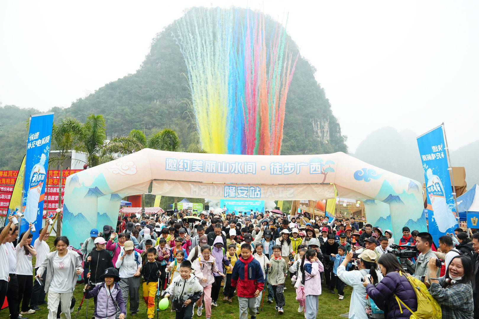 随后,隆安县委常委、副县长李志强正式宣布活动开赛。随着清脆的鸣笛声响,彩色烟雾幕墙腾空而起,蓄势待发的徒步队伍如潮水般涌出起点,向着春日的山水画卷进发,这场以体育为载体、以文化为魂、以旅游为体的春日约定,正式拉开了精彩序幕。