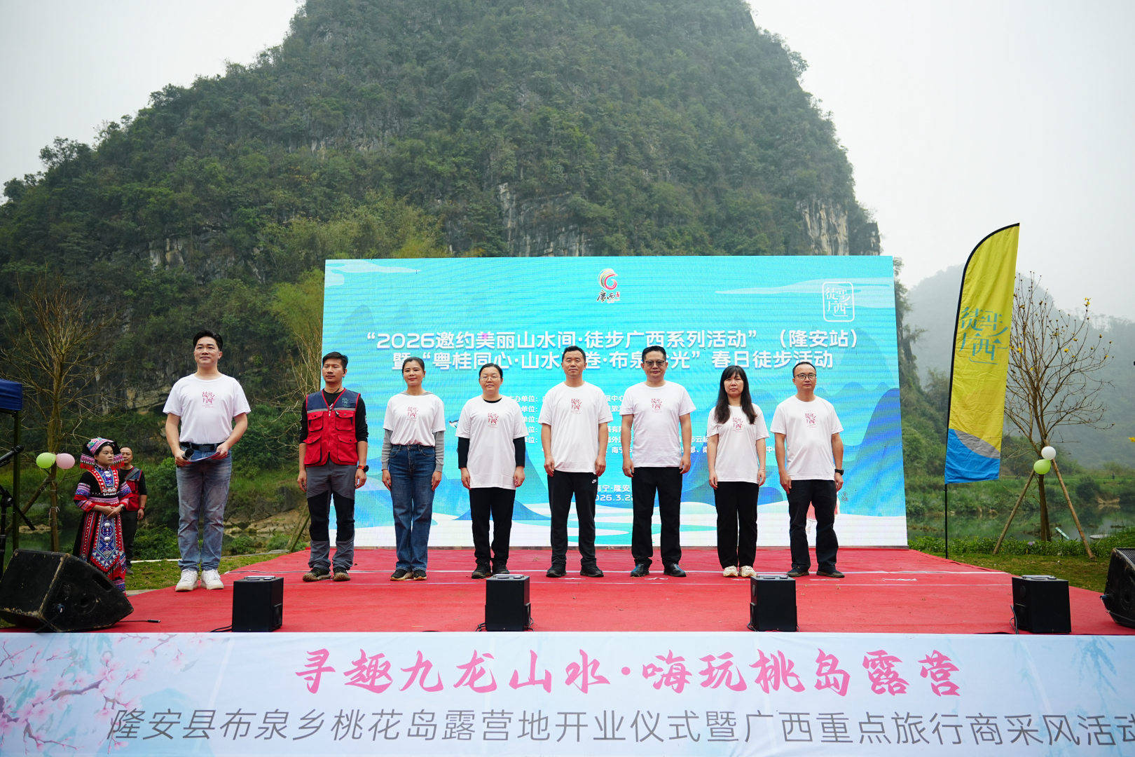 春风染绿山水,脚步踏响春光。3 月 22 日,由广西社会体育运动发展中心、隆安县人民政府主办,隆安县文化广电体育和旅游局承办、隆安县布泉乡人民政府协办,广西云起体育文化发展有限公司运营的“2026邀约美丽山水间·徒步广西系列活动”(隆安站)暨“粤桂同心·山水画卷·布泉拾光”春日徒步活动,在隆安县布泉乡桃花岛圆满收官。这场为期一日的春日徒步盛会,吸引了来自全区各地的 400 余名徒步爱好者齐聚一堂,在 12 公里的喀斯特山水环线中,共同开启了一场体育、文化与旅游深度融合的春日之旅。
