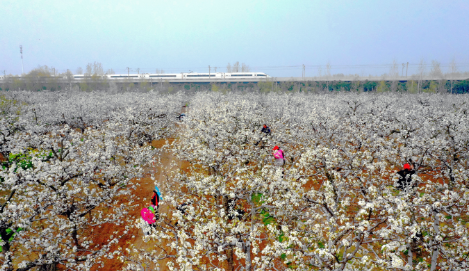 步入梨园,虬枝缀满如雪梨花,层层叠叠、绵延成海,清风拂过,花香四溢。游客漫步花间小径,赏花拍照,尽享春日美好,勾勒出人与自然相融的和谐画卷,也展现出宁陵农文旅融合发展的生动实践。花期里,当地十万余名“点花人”穿梭花海人工授粉,以辛勤劳作孕育秋收希望,成为梨园中别样的动人风景。