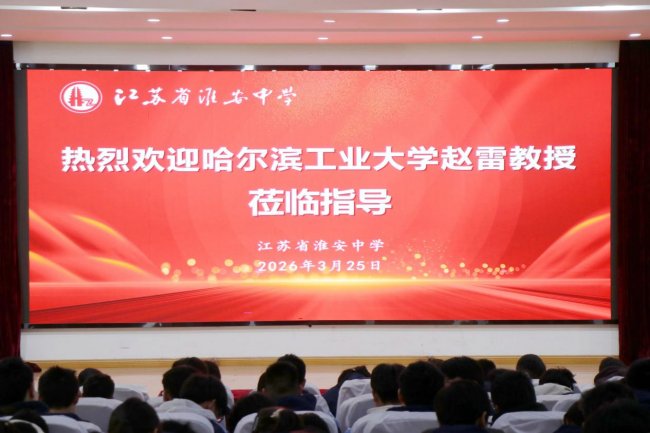 春和景明,逐梦正当时。为帮助学生明晰升学方向、了解顶尖高校办学实力与招生政策,激发学生拼搏进取的热情,3月25日上午,哈尔滨工业大学江苏省招生组副组长赵雷教授一行来江苏省淮安中学,开展专题学术讲座与招生政策说明会。淮安中学党委书记、校长于敏,副校长成向前等出席活动。2025级竞赛班、高二理科名校班全体学生和班主任参加活动。活动由淮安中学教务处副主任郭琪主持。