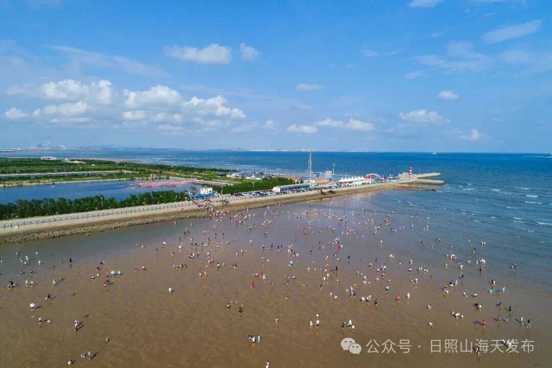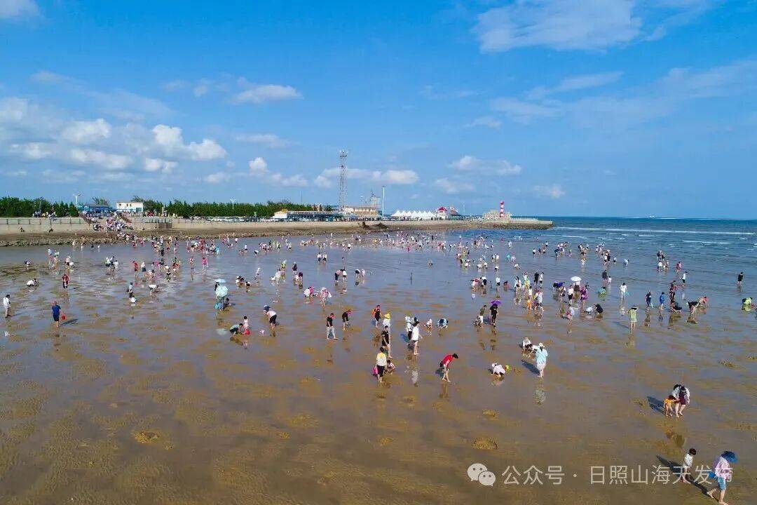 地点2 张家台赶海园 张家台赶海园坐落于日照山海天海岸绿道沿线,坐拥原生态沙滩与礁石,海产丰饶。退潮后,花蛤、小蟹、小海螺遍布滩涂,这里毗邻渔港码头,可赏落日归帆,兼具赶海野趣与滨海诗意,配套完善、交通便利,免费开放且游客密度适中,既能满载收获,也能沉浸式感受山海天的蔚蓝与渔家烟火。
