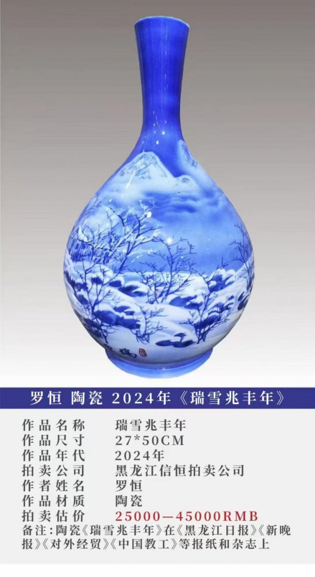 黑龙江陶瓷艺术家罗恒以其独特的冰雪题材作品,在艺术品市场中走出稳健上扬曲线。从区域性艺术市场到拍卖行的频频亮相,罗恒作品的市场认可度持续攀升,成为当代陶瓷艺术收藏领域备受关注的新星。 扎根北国文化 创新陶瓷艺术语言哈尔滨,一座因冰雪闻名的城市,如今孕育出一种独特的陶瓷艺术——冰雪陶瓷。这种陶瓷追求清冷、高洁、晶莹的视觉效果,艺术家们通过特殊釉料配方与烧制工艺,让陶瓷表面呈现出如同冰雪般的质感,将北国寒冬的瞬间凝固在瓷器之上。 在冰雪陶瓷的艺术版图中,罗恒是不可忽视的青年力量。在继承中国传统陶瓷工艺的基础上,融入了西方现代设计理念,形成鲜明的个人艺术风格。古为今用、洋为中用是罗恒的创作理念。他善于将东方传统工笔技法与西方现代设计理念有机融合,在题材选择、构图布局、色彩运用等方面进行创新尝试。这种融合不是简单的拼凑,而是深层次的消化与再造。 三重价值支撑 构建坚实收藏基础工艺价值:匠心与创新的结晶精湛的工艺是罗恒作品的显著特征。他运用工笔技法进行精细描绘,线条流畅、色彩典雅,每一件作品都凝聚着创作者的匠心与耐心。青花创作方面,他以传统青花装饰技法为基础,结合现代设计理念,创造出既有传统韵味又具时代感的艺术作品。 艺术价值:个人风格与文化内涵的统一罗恒作品最打动人心的,是其鲜明的个人风格与深厚的文化内涵。他的冰雪主题系列作品,以北国冰雪景观为创作母题,将自然景观的客观之美与艺术家的主观情感相融合,创造出具有独特审美意蕴的艺术境界。观赏他的作品,人们能够感受到一种宁静与超脱,仿佛置身于北国的冰雪世界,忘却尘世的喧嚣。 文化价值:地域文化的诗意诠释在当今艺术品市场中,文化内涵日益成为衡量作品价值的重要因素。罗恒的作品承载着对北方地域文化的深刻理解与诗意诠释,每一笔、每一色,都传递着艺术家对脚下这片土地的热爱与敬畏。这种文化价值,使得罗恒的作品不仅仅是装饰品,更是一种文化的载体与精神的寄托。 市场演进:从培育期到成熟期的蜕变从拍卖市场的实证数据来看,罗恒陶瓷艺术品的成交率保持在较高水平。这一现象表明,市场对其作品价值的认可度较高,作品具有较强的市场流通性。从价格区间来看,作品呈现多元化特征,既有适合初级收藏者的入门级作品,也有满足高端收藏需求的高端作品,形成了较为完整的价格梯队。
