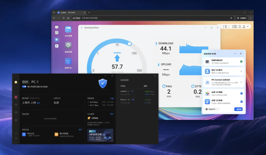 组网完成后,无论身处公司、家中还是出差途中,访问飞牛fnOS,就像访问本地设备一样直接。 支持P2P直连 不限速传输更流畅 传统远程访问,往往依赖中转服务器,带来延迟高、速度慢等问题。 而蒲公英组网支持P2P直连,如果网络条件允许,数据在设备之间直接传输,不经过第三方服务器中转,不限流量、不限速!