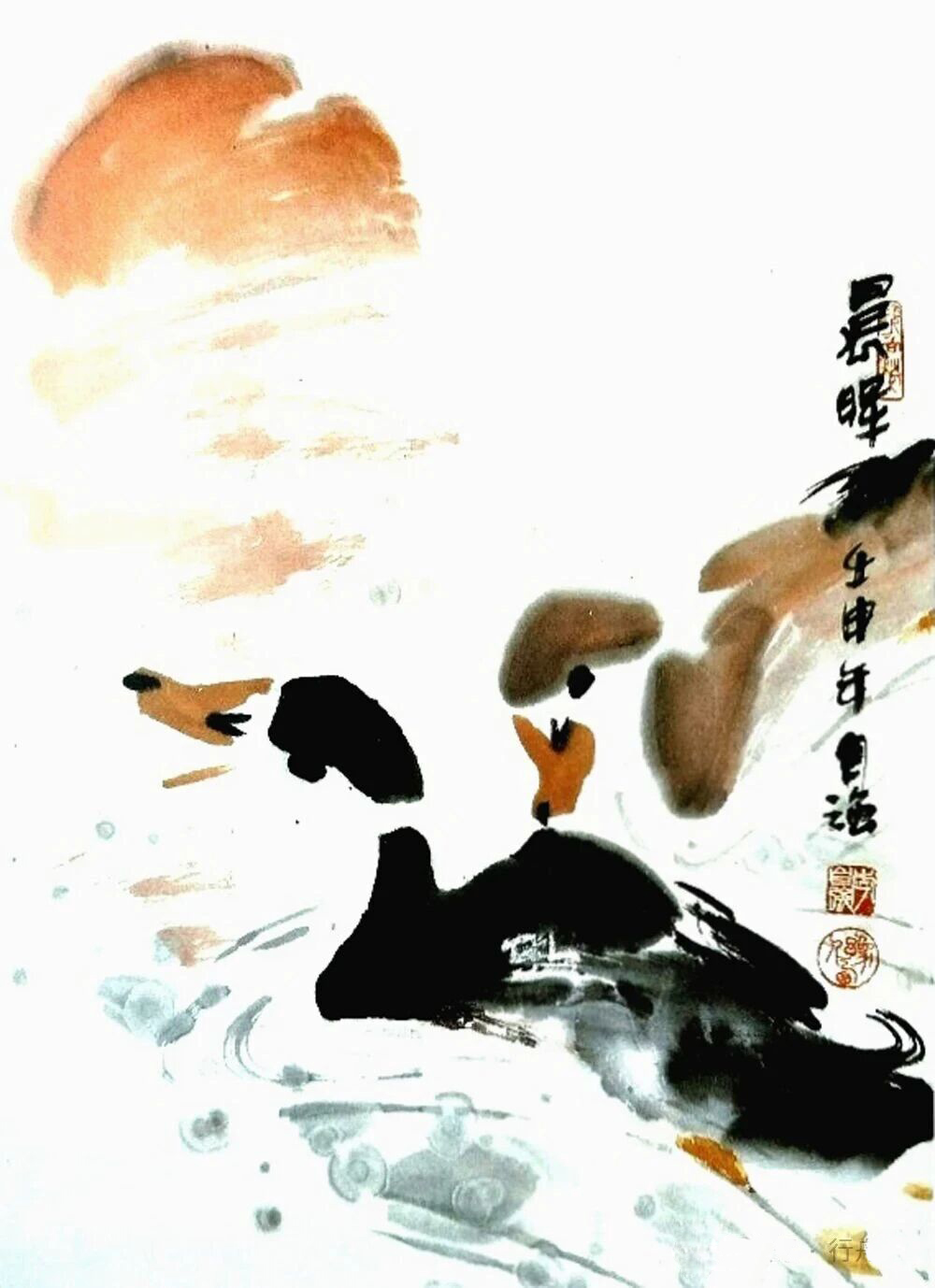 上世纪80年代,肇庆市举办“海内外著名画家作品展”,在笔会上,先生现场创作了一幅水墨画《游鸭》,艺惊四座,广受赞誉。上海名家江南春赞其“寥寥数笔,形神兼备”,恳请给他画一幅双鸭图,欲回沪“如法炮制”,潜心研习;山西省美协主席姚天沐对其所画游鸭推崇备至,也要索画研习;澳大利亚名家翁真如更是全程录像,以作珍藏研学。