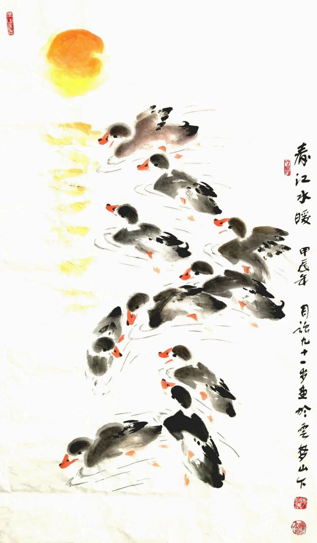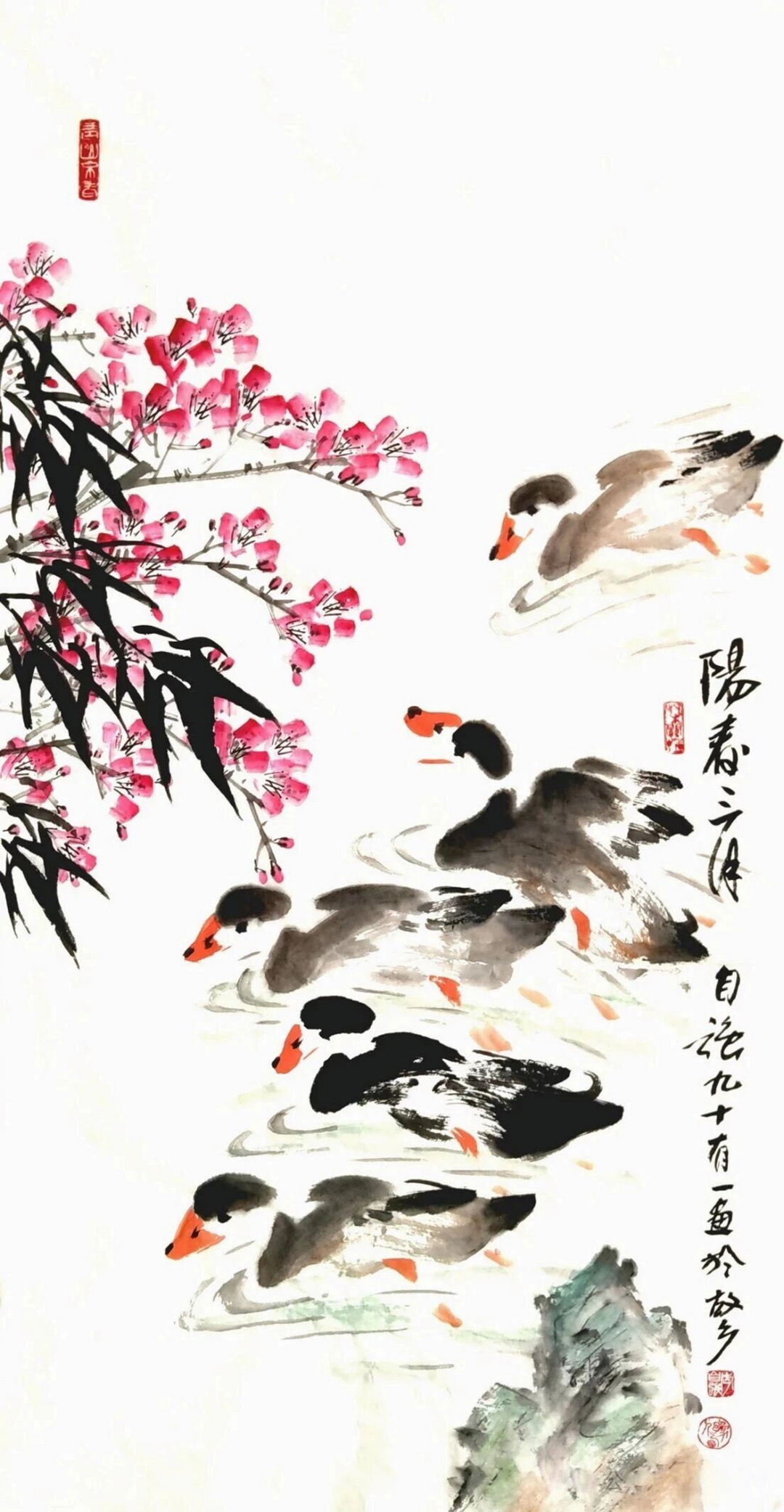画为心印,品见胸襟。鸭象征吉祥、富贵与和谐,先生以笔寄情,将美好期许与生命感悟熔铸笔墨。笔下之鸭灵动鲜活,源于对鸭之形态、动态的细致观察,源于对笔墨法度的极致掌控,更源于对自然与生命的赤诚热爱。