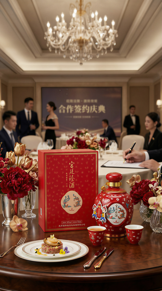 四、有背书:权威专家,文化正统性保障 高端客户在选择礼品时,往往会在意“是否经得起推敲”。 宫廷臻特邀故宫博物院前宫廷部主任、泰斗级专家苑洪琪教授担任品牌文化顾问。苑老师深耕清宫史、宫廷生活及御膳文化数十载,曾参与制定钓鱼台国宴标准,著有《故宫宴》。在她的指导下,宫廷臻的文化表达力求“有史可依、有典可查”。 故宫酒文化研究会亦提供学术支持。权威背书,让收礼方感受到送礼方的专业与用心。 五、有场景:四大礼赠场景,精准匹配 宫廷臻定位“高端文化礼品”,覆盖商务礼赠中最核心的场景: