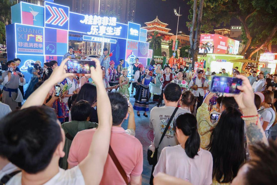 作为 2026 年 “广西三月三・八桂嘉年华” 重点配套活动,“桂韵非遗・乐享生活”广西非遗消费季自 4 月 17 日在南宁朝阳印象城外广场启幕以来,持续吸引广大市民与游客前来打卡体验,五一小长假期间持续开放,诚邀市民与各地游客走进南宁,共赏八桂非遗独特魅力。 “五一”期间,现场活动展演全天不间断,濒危剧种展演、非遗手作体验、非遗快闪演出、乐队驻唱、科技舞、赛博NPC巡游、主题活动轮番上演。其中,5月1日壮族机甲巡游,民族元素与科技感碰撞亮相;5月2日举办十二花神花朝节,国风雅韵尽显;每天都有主题巡游、非遗展演,传统韵味与时尚活力相互交融,将营造出浓郁喜庆的假日文旅氛围。