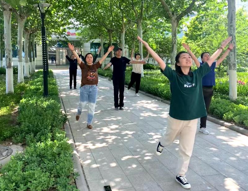 在花若云霞、气候怡然的五月,“每日工间操”活动营造了“健康生活 快乐工作”的氛围,促进员工以积极向上的心态、健康活力的身体投入到国内一流数智油田的建设中。(陈雨娇 袁斐)