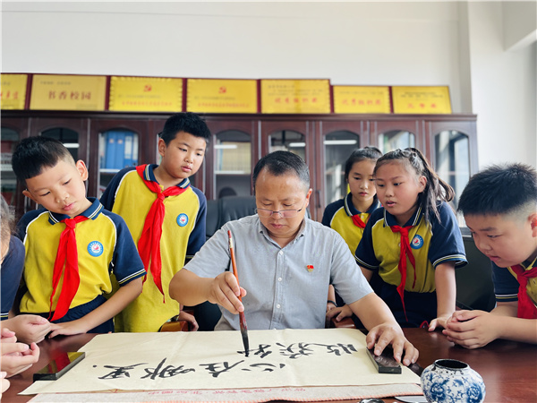 在开校揭牌典礼上,向帮松校长告诉全体老师是来拓荒的,人要敢为轻舟搏巨浪。他和老师们根据校名提炼出“君子大雅,自强不息”的校训。“君子大雅”出自“雅”,旨在把学生培养成为品德高尚,才学优异的人。“自强不息”出自“乾”,天行健,君子以自强不息。意思是自己不懈地努力向上。“君子大雅”是方向、是目标、是结果,“自强不息”是路径、是方法、是过程。二者结合起来就是“乾雅者,赤子初心,正大光明,自强不息,修齐治平”。实际上是从新时代湘西的价值观出发。然而,这过程始终以健雅为学校的“细胞”,让学生体会这里的时光是甜密的、温暖的、美好的,如诗如画。 学史引校向雅行 《人民日报》刊载的一文中说,学校发展有不同的模式和路径,但优质教育的实现有赖于教育文化自觉,文化是学校建设的灵魂。向帮松校长深知,要有灵魂的人才培养坚持立德树人,有情怀的办学定位坚持“健雅教育,智慧成长”,有坐标的内涵提升重点打造“信息化”“课程化”“科技教育”和“课程改革”四大品牌, 有特色的发展战略坚持“文化立校、学科强校、特色兴校”,有引领的党建标杆坚持强化思想引领、文化引领和价值引领。 教育教学质量是学校成长的生命线。因此,向帮松校长大力推动课堂教学改革,一学期至少召开教学专题研究会6次,举行教研活动20余次,推出研究课15节,他还亲自担任六年级《道德与法治》教学,引领思政课课堂改革。他始终把学习理念贯穿教师队伍建设,并号召学校名师、学科带头人以及骨干教师充分发扬甘为人梯传帮带。举办了第一届青蓝工程师徒结对仪式,共有20名教师结成师徒。孔子曰:“少成若天性,习气如自然”。通过“文明用餐”“生活技能大比拼”“爱粮有我,共筑粮安”“九九重阳节,浓浓敬老意”“争做新时代好少年”“写规范字,书爱国情”等活动,为孩子播种一个行动,养成一个习惯,收获一个个性,让其终身受益。家长告诉记者,这里就有了为学生的终身发展奠基的理念,对学生的成长进行全面设计,全面促进。乾雅教育是办在家长心坎上,把孩子送到这里他们非常放心。