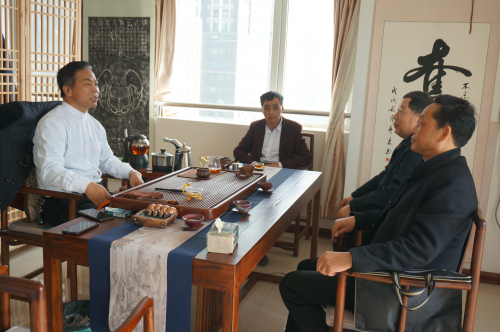 2021年3月9好上午,中国都市报总裁顾问田聚成、中国都市报新闻部主任王长安、河南省风水书画研究院副院长、河南省星象姓名研究院院长梁九州、新华在线网编辑陈品清慕名前往河南省易学文化研究会,拜会河南省易学文化研究会会长刘信辰先生。