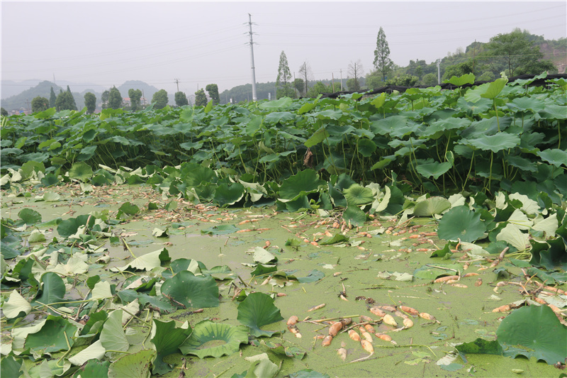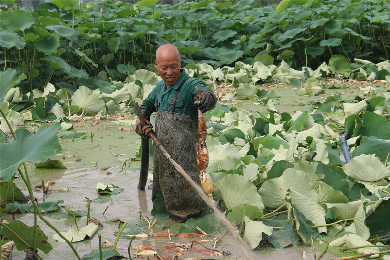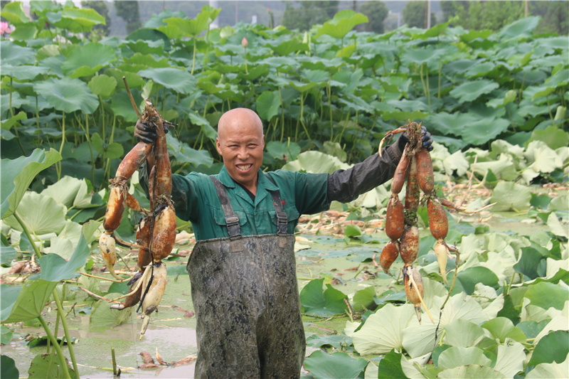 村干部陈星革介绍,他们村在很早的时候就有种藕的传统了,特别是国家实行土地承包制以后,村民们种藕的积极性很高,后来,通过对品种、技术的改良,实现了一年两熟,取得了较好的经济效益。 藕农陈化南指着一丘已挖掉藕的农田笑哈哈地说,今年他是5月24日开始挖藕上市的,不到一亩田,就卖了1万多元。