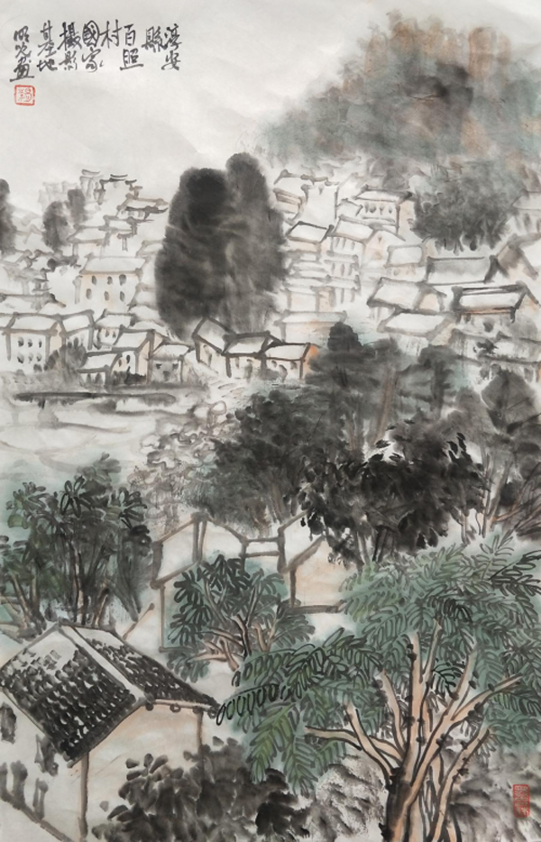 中国画讲哲学思维,用辨证法处理画面;一幅画的优劣首先是虚实关系的处理,虚实关系处理好了,画面自然生机盎然。虚实关系在画中就是空间切割和笔墨造型抒写时的浓淡轻重处理。要创作一幅虚实相宜的好画,务必处理好黑与白,浓与淡,疏与密,远与近,大与小,长与短,高与低,枯与湿,齐与缺等等关系。无论画什么主题和用什么形式都离不开这些矛盾制造与调和;辨证地处理这些矛盾自然会产生一幅好作品。所以说,画中国画的过程就是不断制造矛盾和解决矛盾的过程。