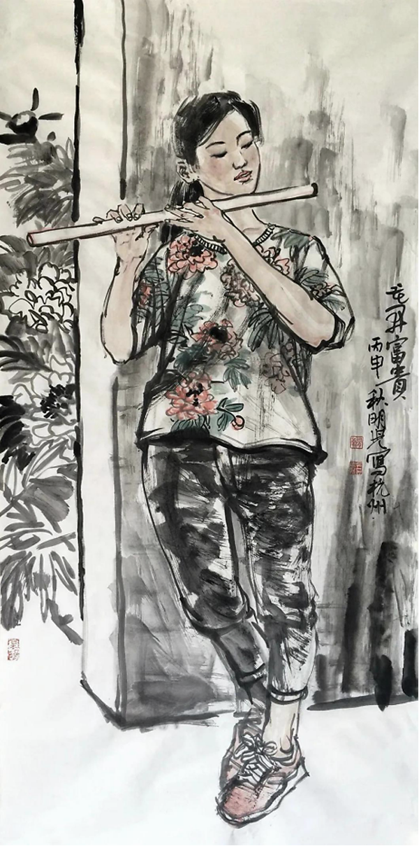 我试着用文字表述:中国画是画家对客观世界之主观表达,追求通过现实事物完成自我理解后的自由抒写,在表现技法上充分体现笔迹墨韵的写意精神,力求做到“天人合一”。