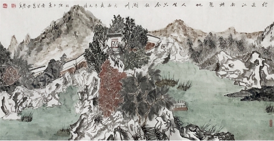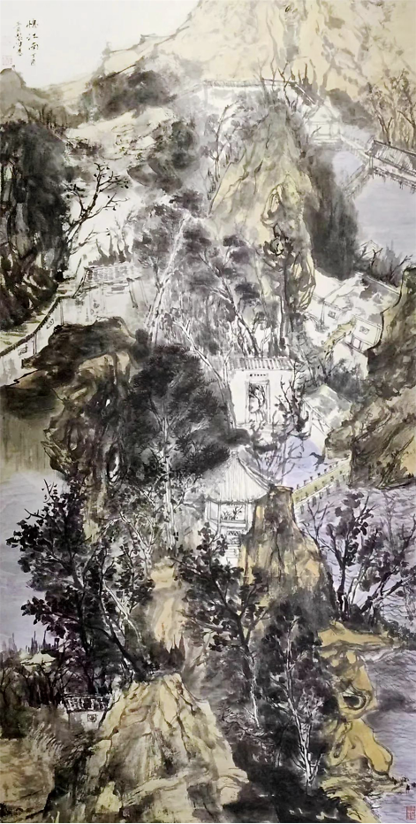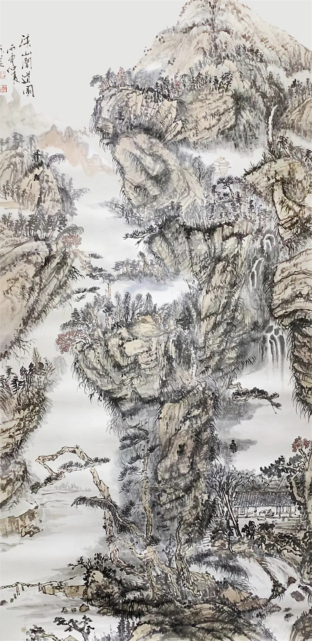 山水的意韵神清 文/蒯天 在国画创作上,李香芝认为,作为当代山水画家理应崇尚延续千年的中国文脉,坚守对传统古典笔墨的追求和发扬,作品应力求紧紧抓住传统笔墨的精髓,因为那是中国画的精神源泉和最终皈依。因此,在众多的国画艺术范畴中,她追求山水画的古意,即具有古典笔墨精神和当代审美意趣的古意。 书画创作贵在独创,但凡独具有才气的艺术家都会通过个性的笔墨语言来体现出自己的绘画风貌,古人说:“情感于物而动”,在绘画创作中,画家如果没有亲身体会,没有深入大自然中的观察和体验的感悟,画出来的作品就不会有真感情,真激动,一个画家的作品连自己都感动不了,更何以感动他人?所以说,艺术创作中,生活是很重要的。画家要是没有一定的生活基础,很难画出好的作品。要想创作出好的作品,画家们就得“读万卷书”,“行万里路”。李香芝深深知道这一道理,她长年坚持深入生活,观山揽胜,采风写生,为她的山水画创作打下了坚实的生活基础。她明白,要想创作出好的绘画作品就必须“真境逼”,而后才能“神境生”。李香芝这些使用若干笔墨方式和泼彩形式描绘出的山水画给人以厚重脱俗之感,民族传统绘画的样式和现代艺术表达模式巧妙的融合起来,“情景交融,意境并生”。例如她的《云涌松风一览图》,观之云蒸霞蔚,氤氤氲氲,带着一种西画里光影迷离的感觉,虚虚实实,意蕴深远,观之顿觉身临其境,甚至有一种肋下凉风习习的感觉,着实让人为画家高超的画技以及勇于创新的艺术追求而叹服。