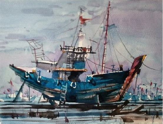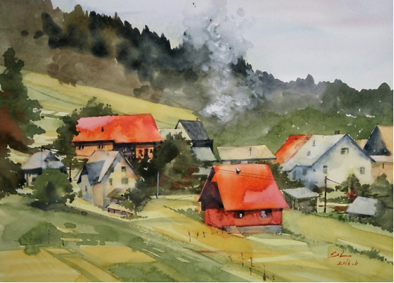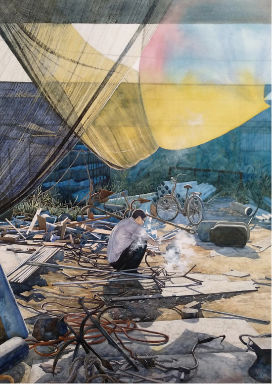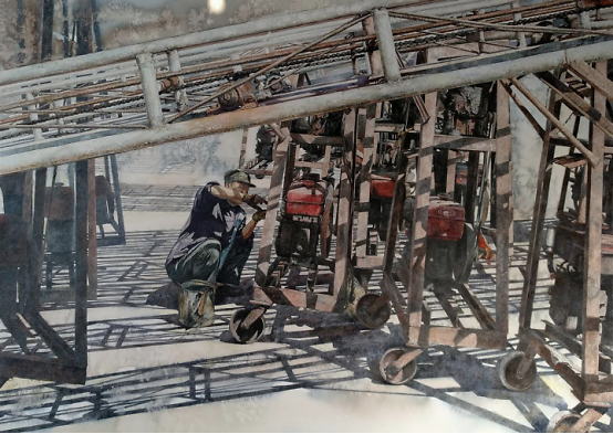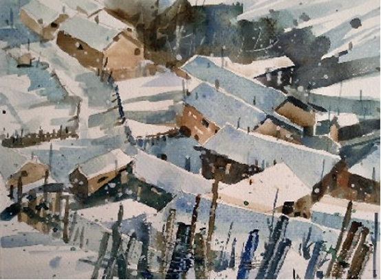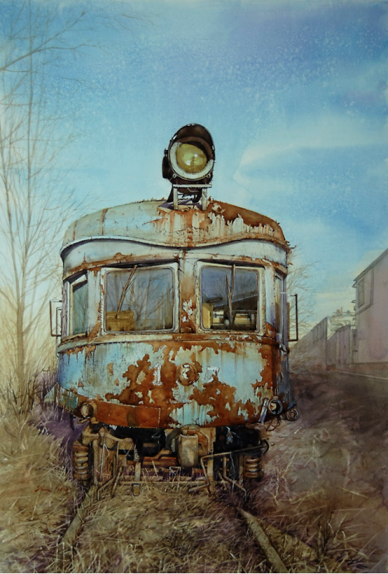 石磊,辽宁省美术家协会会员,抚顺市美术家协会会员。现任教于辽宁省抚顺市东洲区东洲第二小学校。 参展及获奖: 水彩画作品《正午阳光》入选第十三届全国美展水彩粉画展 水彩画作品《抚顺老电车》入选辽宁省美协成立六十周年展 水彩画作品《老军壶》在辽宁省廉政主题美术展获优秀奖 钢笔画作品《茶馆》入选辽宁省综合画种美术展 曾获得辽宁省中小学美术教师基本功大赛全能组一等奖 美术课《线条的动与静》获得市级优秀课一等课 美术课《感受音乐》获得省级优秀课二等课 本人自幼酷爱绘画,小时候陪伴我最多的就是拿着铅笔在各种各样的纸上画画。那时候家里条件并不好,没有在小时候系统的学习过绘画,但喜欢绘画的那份热情从未消失过。 初中毕业考上了本地的师范学院的美术专业,算是正式开始学习绘画了。由于师范类院校的专业课不太系统,远远比不上那些专业的美院教学,除了水彩画以外的大部分画种都学过点皮毛,但也仅限于皮毛。虽然增长了一些见识,但是在绘画技能上没有太多的进步。 赶上师范类最后一批包分配,但是毕业后并没有马上给予分配,我利用这个时间先后在鞍山师范学院学习了美术专业的本科,又在辽宁师范大学学习了美术专业的研究生。虽然是函授制的,学习时间很短暂,但在这个时候学习到的东西可能更多一些。 直到分配在了小学,成为一名小学美术教师,这个时候曾有过一段时间想过放弃绘画了,因为一没有老师教,二自己觉得可能自己真的是没有天分。 一个人的时候,想到当初有的同学放弃了当老师,考上了很好的美术学院,而自己当时也想考,又怕给家里造成严重的经济负担,也就放弃了这个念头,但内心还是放不下对绘画的热爱,如今虽然有了一个稳定的工作,内心对绘画的热情又开始悸动起来。 于是在参加工作一两年后又开始拿起笔画起画来,刚开始并不知道自己要画什么画,国画?没有童子功基本画不了。油画?也不太喜欢,而且基本功不好。突然想起来上学时的一次写生,一位年岁较高的老师特别喜欢画水彩画,当时看到他在画写生水彩画,顿时喜欢的不得了,可能就是在那个时候在内心种下了水彩画的种子。 而水彩画对于我算是零基础,而我呢偏偏有着一骨子犟劲儿,这一画也接近十年了吧。而头五年的时间基本都在走弯路,画的东西自己都不喜欢,自学真的很难,但也乐在其中,没有自暴自弃。 在学画的过程中可以说我是没有老师的,也可以说所有热爱绘画的同行、前辈们都是我的老师。大约五六年前,机缘巧合,认识了同为小学美术老师的闫旭老师,也是同样喜欢画水彩画,更是取得了惊人的成绩。也正是是闫旭老师鼓励我,让我多出作品,敢于投稿,参加省展、国展。我当时觉得自己怎么可能参加省展呢,对自己的画真的是一点自信也没有。后来画了一张2开的水彩画,算是第一张长期作品,准备参加省展,就是那幅《抚顺老电车》,没想到第一次参加省展就被入选了,还给赠送了一本大大的画册,这给了我极大的自信心,在接下来的五年时间里,先后三次参加省展,顺利成为了省级美术家协会会员,作品《正午阳光》又在2019年末入选了全国第十三届水彩粉画展。 取得的这些成绩应该感谢很多指点过我的老师们,但最应该感谢的还是闫旭老师,如果不是他的鼓励和指点,我现可能还不敢参加任何展览,更谈不上取得这些成绩。