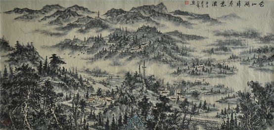 其实,艺术家朱正发的山水画创作中最让人激动与难以忘怀的是他花费了数年时间,以家乡句容市所辖属的各个村镇为具体坐标,以句容境内仅有的几座不高的山为画面取景的高峰。乡村则以平远的田园风光来展示农村在改革开放以来,科技兴农所带来的安居乐业的新型农村面貌。其中,句容市区包括市政府办公楼以及市区重要的建筑群等,几条重要街道被画家描绘的栉次鳞比,是继北宋张择端《清明上河图》以及《姑苏繁华图》之后又一杰作。这幅《句容胜景图》全长一百米,高一米二五,览之则气象万千,绵延不绝而云蒸霞蔚。鉴之则笔精墨妙,气韵生动而生意扑面,这难道不是一颗热爱家乡的赤子之心吗? 山水难于造境,境由心设,境由愤者生。愤者造境逍遥以畅达其情。 清代文学家廖燕说:“慷慨者何哉?岂藉山水而泄其幽忧之愤者耶?然天下之最能愤者莫如山水。……其气之愤见于山水者如是,虽历经千百万年,充塞宇宙,犹未知其底止。故知愤气者,又天地之才也。非才无以泄其愤,非愤无以成其才;则山水者,岂非吾人所当收罗于胸中而为怪奇之文章者哉?” 逍遥与自在是中国艺术审美理想与审美心胸的典型,也是中国艺术家毕生追求的目标。通过鉴赏艺术家朱正发先生的两幅山水画题材的作品,可以强烈的感觉到,艺术家在强化中国艺术的逍遥精神,这在当下也等同是一种具有使命感的传承与创新精神。