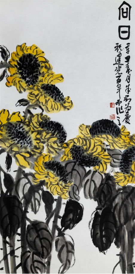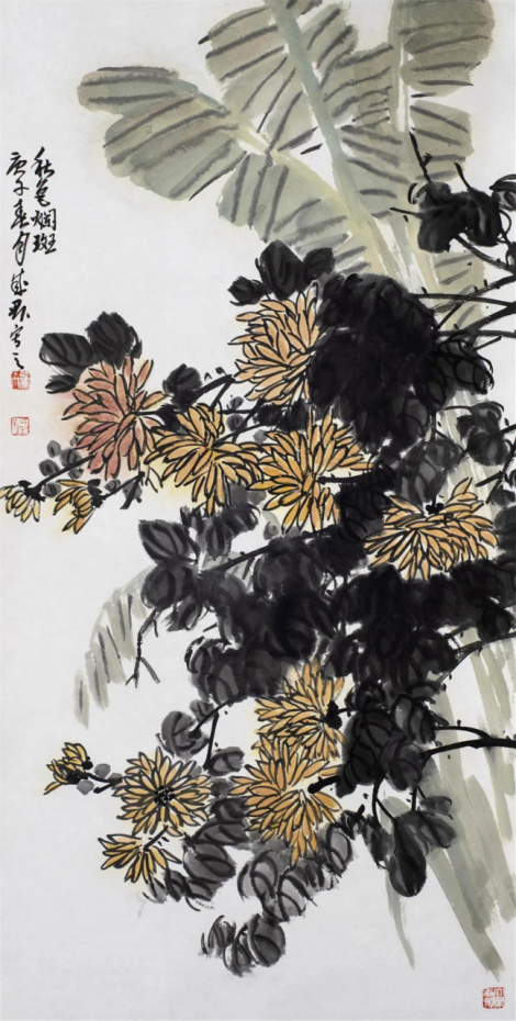 中国画的表现语言是程式化的,有一定的规范,要跨进中国画创造的门槛必须老老实实地学习和掌握这些基本规范,这不仅需要耐心、勤奋,还需要提高传统文化艺术的修养,特别是文史知识的储备和书法的训练。他正是这样做的,他努力涉猎画史画论,并在长期的书法练习中,对中国画的章法、笔墨造型与书法的关系有所认识、有所领会。读孙成刚的作品,可以看到他有较为扎实的笔墨造型基本功,他的绘画语言都有一定的出处,从齐白石、潘天寿、李苦禅,直追吴昌硕,他认真研究他们的作品并从中吸收营养。孙成刚的作品之所以有纯正的艺术格调,就是因为他从传统的规范出发,有较高的艺术起点,避免了中国画创作中最忌讳也最容易染上的世俗气、浮躁气和霸气。他同时懂得,从事中国画创作的画家除了要遵从传统规范外,还必须要有个性的表达方式。