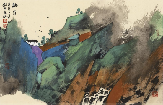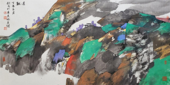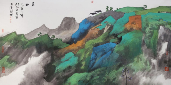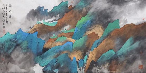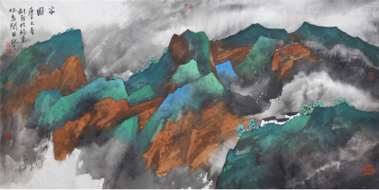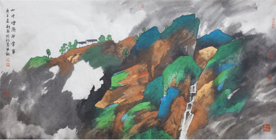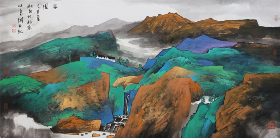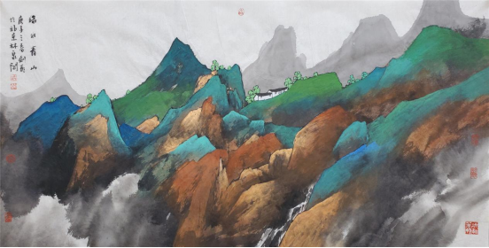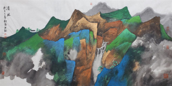 进入二十一世纪后,创作优秀的文化艺术作品,是每一个艺术家的文化思考。以内在的情感,生命的灵性与技艺融为一体,“写意重彩山水”看似简单,但创作起来是非常有难度的课题。笔墨的技艺与色彩结合,在中国画领域差不多有些水火不相容,要融合的恰到好处可以说没有一定成熟表现方式方法,绘画整体性是很难控制的。武剑飞的写意重彩山水从传统中来,又不同于传统,属于另辟蹊径的开创者。