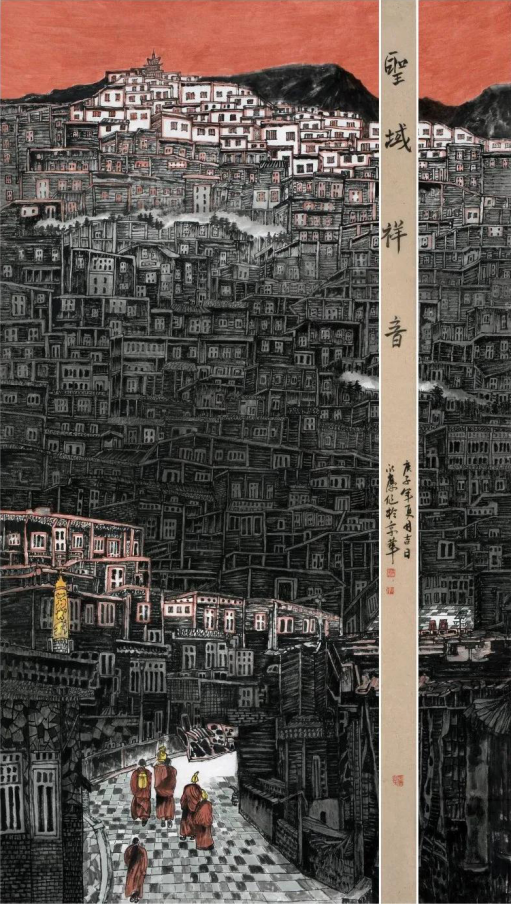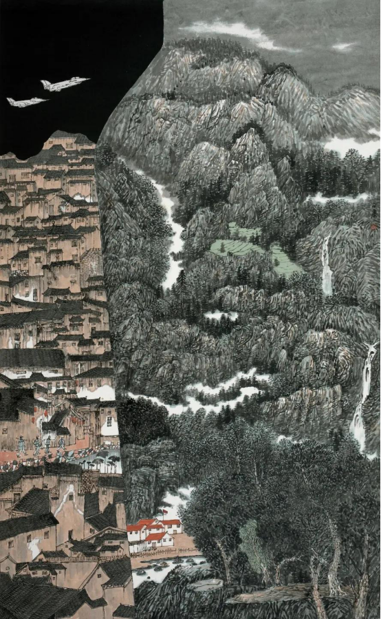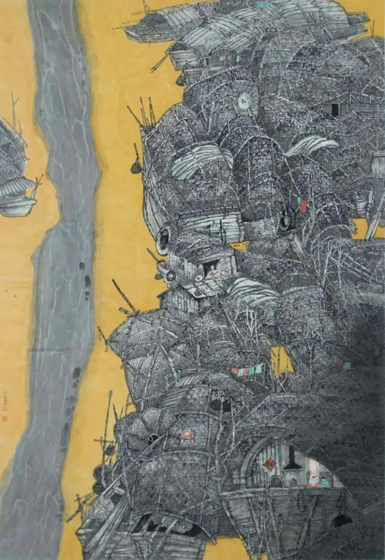 一则因为,历代众多彪炳史册的山水画大师已成高山峻岭,让后人难以逾越。二则因为这一古老的画种艺术体系臻于完善。几乎无以复加。所以,后人便有了两种选择:一是学习传统,固守成法,但终归学术上毫无建树,淹没于山水画的大海之中;二是积极探索由古典传统形态脱身向现代形态转型,力求突破艺术樊笼,探索新的绘画语言与形态的蹊径。翟永庆当属后者。