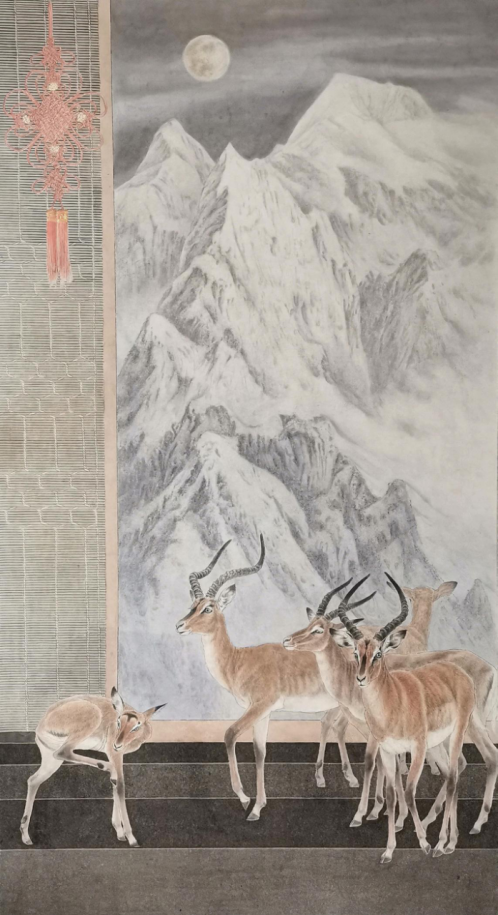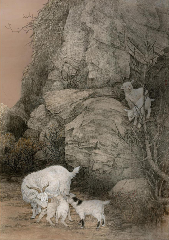 程宝江老师寄情自然,不拘一格实力画家,把心尘于自然,在自然中去寻找灵感,表现出一种静谧舒适的氛围。他的作品清新典雅,笔触生动,把动物和花鸟都细致入微的刻画,特别是他的羊,有自己独特的表现方法,他的每一幅作品都精心设计,点、线、面,黑、白、灰把控的恰到好处朴实无华、规规矩矩的呈现方式让我们体会到画家内心的平和,从而使画面呈现出一种宁静祥和的画面氛围。