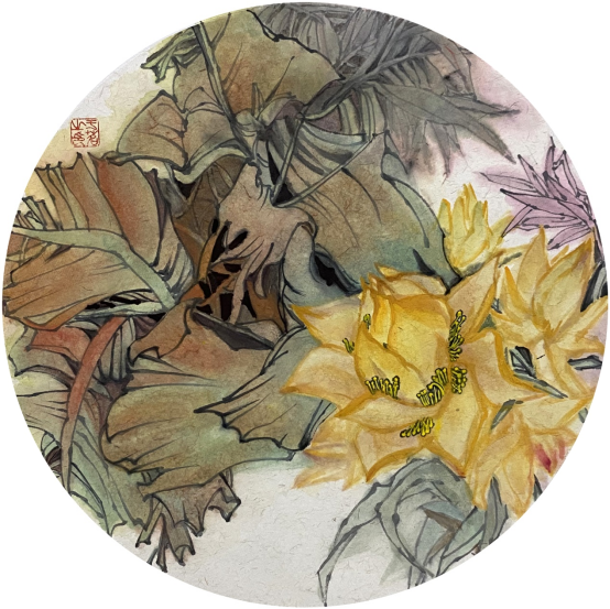 于茗,山东威海人,毕业于山东艺术学院,2017年毕业于胡明哲岩彩进修班、2019年毕业于首都师范大学吉瑞森工作室。