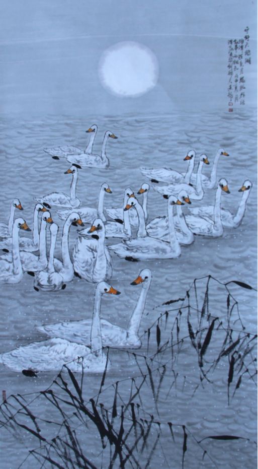 20多年来,寒来暑往,晨昏夜明,他就像个痴情土地的老农,以笔为锄,以墨为镐,在艺术的土地上深耕细作,废纸三千,汗水无量,不断探索,不断创新,终成自家面貌。2011年,正值黄河三角洲开发被列为黄蓝战略之际,在市委宣传部、市文联的关心支持下,他在黄河美术馆举办了以“爱我家乡”为主题的个人画展,这是蛰居多年的第一次集中亮相,100多幅黄河口湿地题材的作品,质朴,清新,生动,博大,辽远,唯美,以强大的冲击力让观者大为震惊,各大媒体纷纷报道,业内人士交口称赞。