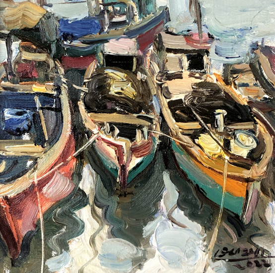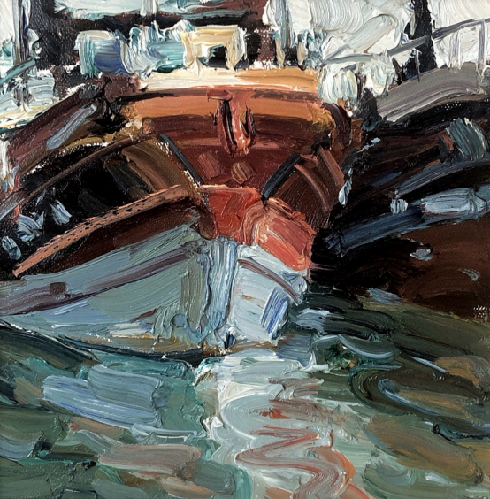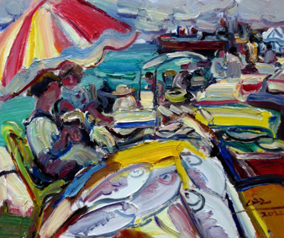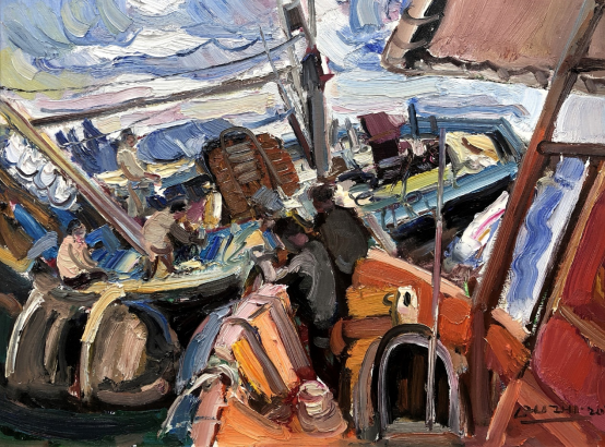 作品磅礴大气中不失细腻飘逸,写实写意浑然天成,凸显出扎实的美术功力和超凡脱俗的艺术想象力和表现力,于细微处见精巧,于厚重中见灵动。 曲直曾经在东海之滨创作了“渔人码头”系列作品,如今远赴海南奉献出“南海潮头”系列画作,笔触更加圆融,色彩更加端丽——椰岛风情、渔船、热带鲜果、贝类海鱼等静物,都被他赋予了鲜活的艺术生命,正如郑板桥画作题诗:“一枝一叶总关情”。曲直的“南海潮头”系列,契合了当今世界油画创作重神韵重表现的潮流,折射出曲直创作风格成熟升华的一个重要节点。 俯仰天地,屹立潮头。