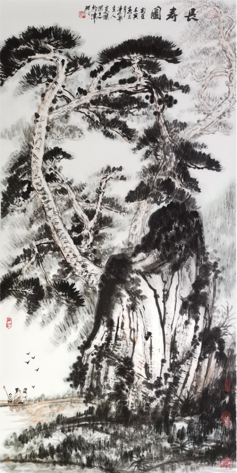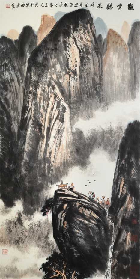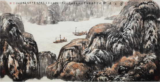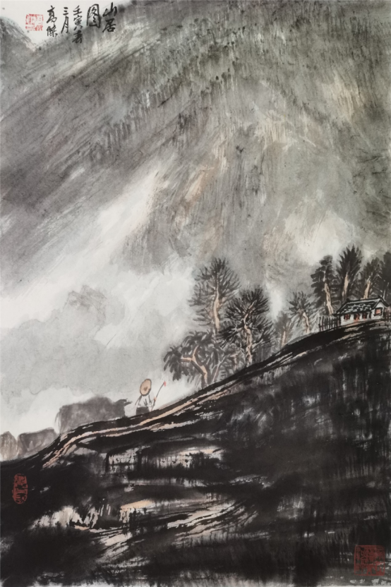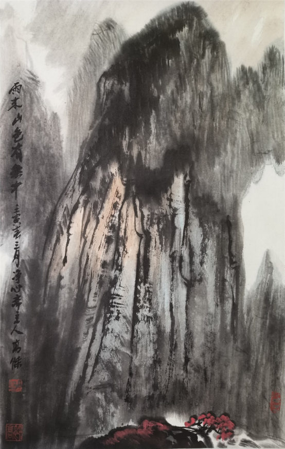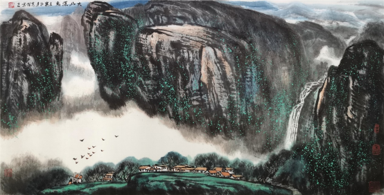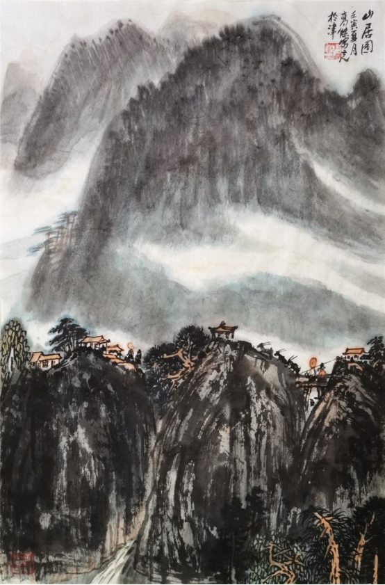 皴法多样,神韵贯通是高杰先生山水画技法的突出特色。中国山水画有着两千多年的文化传承,画山水讲究皴法,皴法不娴熟画不出大山的气势和神韵。高杰先生在文化上继承了先人优秀传统的基因,凭着自己的勤奋和悟性,闯出了自己绘画技法的新天地。高杰先生的山水画皴法很难明确的归为哪一类。