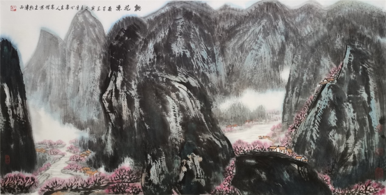 巧用染法,色彩明快是高杰先生山水画艺术特色的另一亮点。他的山水画作品《两只蝴蝶》、《道法自然》、《清幽》和《高原格桑花》,都是用的不同的染法。以浓、淡、干、湿、凝、渍的变化,积染而不死板,淋漓而不臃肿,画出了中国画传统的“笔情墨趣”。高杰先生在山水画创作中努力追求的是苍茫厚重中不失灵动,轻灵缥缈间又不失厚重,色彩斑斓而不失传统底蕴。因此给人以赏心悦目,清新明快,大气厚重的欣赏欢娱。