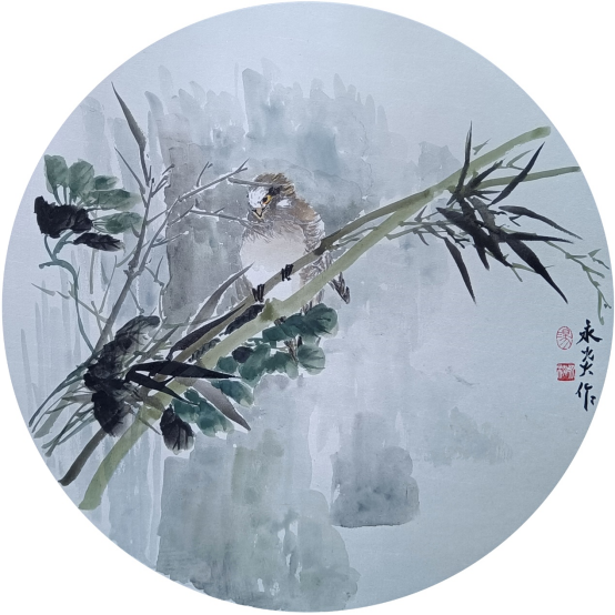 有一著名花鸟画家看了我的全扇画后说:“汤永炎的花鸟画造型严谨,蕴含着物象的意韵情神,水墨清雅呈现笔力的丰厚,加上平稳的、又有变化的构图,形成了深入浅出,雅俗共赏的绘画语言,在平淡无奇却又清丽明快中恰恰体现出为人平和、豁达、谦逊的风格与人品”。