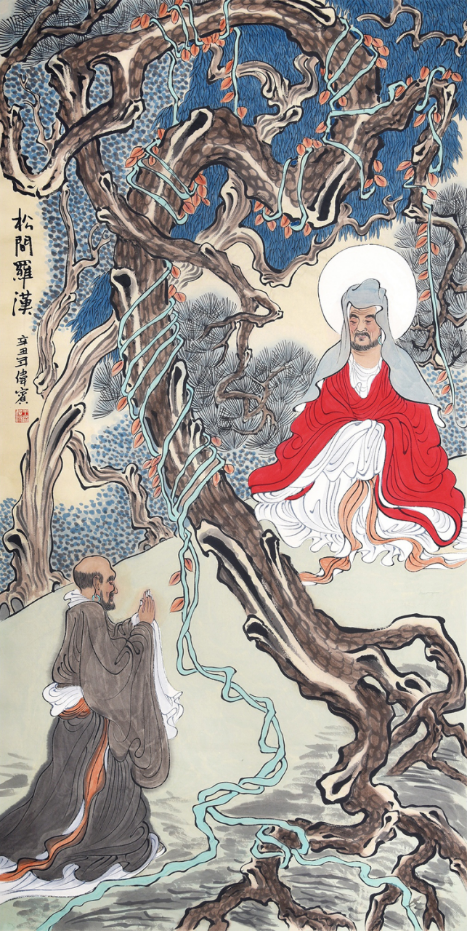 正如所言:“近代海派名家任伯年等所作道释人物画则多是为迎合市场需要而作,他们的道释画只是为善男信女们提供一种心理的服务,其艺术造诣和影响力再也不能与晋唐时期的宗教画同日而语。”近现代以来,传统道释人物画的创新已很难突破,尽管有不少艺术家笔耕不辍,然道释人物画方面缺乏大师级人物已是不争的事实。进入当代,道释人物画能画会画的人就更少了。而王伟宾却不被世俗所扰,不偏听旁信,不随波逐流,从容不迫,坚定自若,选择以道释人物画为一个主要研究方向,同时他本人也从中获得了心性的清明与矜持,生命的慰藉与超脱,这何尝不是一种境界、一种精神,一种拙朴的智慧!