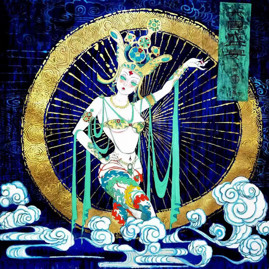 他笔下的美人:妖媚诱惑阿娜多姿活色生仙,个个大胸大臀杨柳细腰摄人心魄勾人眼神,嘟嘟红唇樱桃嘴又充满了性感的诱惑,有着一双绿色眼睛幽幽暗暗慢生情素。应该是释权了男人们心中对女人的想往.暗恋和探讨着女人的神秘、心中所愿的心灵女人形象吧。 格格:此人只应盛唐有,三千宠爱在一身。这个人我不说大家也知道是谁了吧?哈哈哈哈。虽是玩笑,但老师笔下的重彩美人的确实独具特色别具一格。