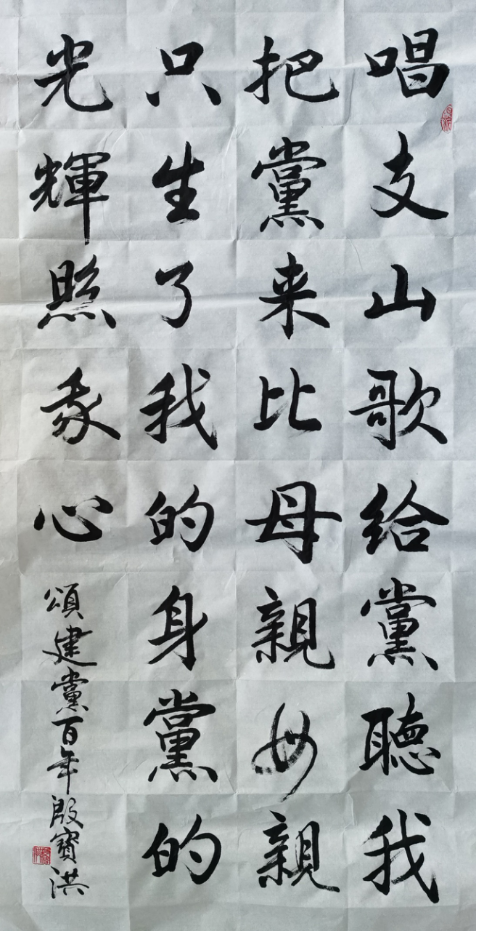 艺术简介 作者自叙:殷宝洪,江苏无锡市人,1943年生,喜传统书法。楷书师从温彦国先生,主要临习《欧阳询九成宫醴泉铭》和赵孟钚。 我在有限的时间里接触的书法,对于中国几千年书法传统而言,只是沧海之一粟。 过去寻常百姓家司空见惯的笔墨书写,如今成了少数人近乎奢侈(因为需要大量的时间)的艺术拥有。 正因为这样,习书离不开思考,离不开选择;任何人只能在有限的时间里,选择有限的目标去努力、去耕耘。但也永远无法穷尽中国书法宝库的珍宝。取法乎上、少走弯路,也许就是习能所得的要诀。 书法离不开审美取向。我崇尚“中和”之美。不泥桎梏,不求狂放,在“中和”里,体味书家之道。欣赏寓柔于刚,藏秀于雄,正中寓奇,方圆天成的意境。 书法,是汉字与人的气韵的交迸,是内与外的精神贯注,都是必然的修炼。 “学书在法,其妙在人。”本着实事求是,自强不息的精神,长则扬之,短则补之,谬则弃之。 非常感谢中国书法家协会名誉主席沈鹏先生,多年前为我《诸葛亮出师表》长卷题字。 感谢长期教授书法、关注我习书的老师和朋友:糜振玉和温彦国、颜振卿、傅剑等著名书法家。 殷宝洪 2022年9月于北京