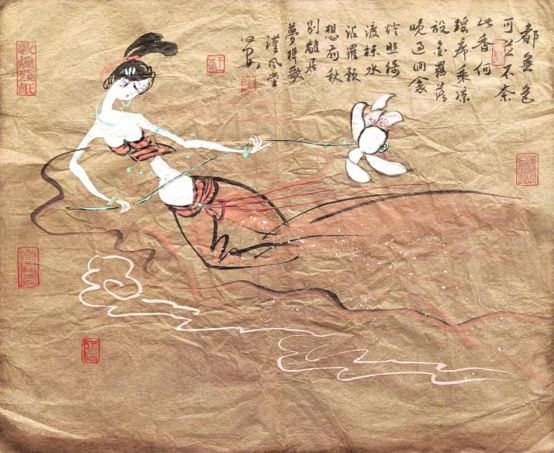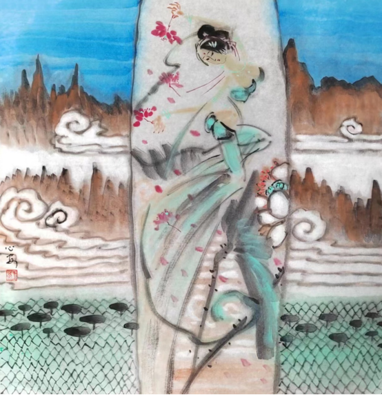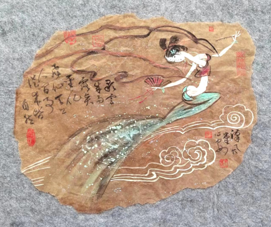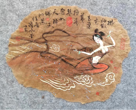 我的《飞天》系列作品,源于一带一路上的莫高窟艺术,我被莫高窟艺术之宏伟所震撼,被飞天艺术之精湛所折服.
