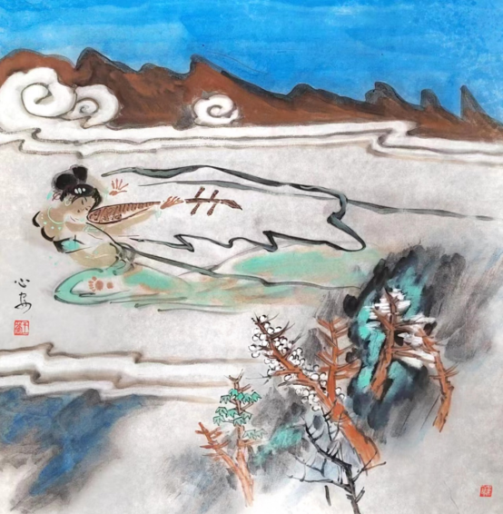 《山东人》:您的作品从工笔转向写意,写意是否更能体现笔墨意趣和精神内涵? 王心安:工笔与写意,是中国画的两种形式。写意画更能体现文人精神和至高境界,也是画家的最终目的。写意画世称文人画,也称士大夫画,是作者综合素质的反映,需要长期的励炼和修养,有了一定的人生阅历,有了书法、造形功力和文学功底,才具备了画好水墨写意的能力。可谓“人书俱老”,画亦如是。 我小时候学习工笔,十几岁天天在滕县工艺美术厂画工笔仕女图,锤炼了手头的功夫。后来又到中央美院工笔画室进修,用工笔的形式画人体写生,这些都为我后来的写意飞天作了铺垫。工笔与写意,在我的绘画生涯中是兼而有之的,特别到了中年以后,工笔与写意并举,也或交替进行。后来,就专攻写意了。专攻水墨写意,也是我的最终目的。