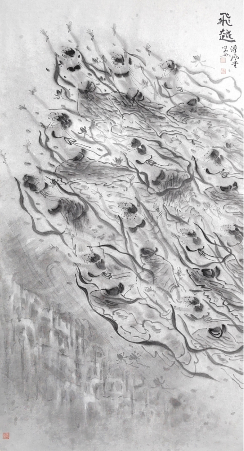 《山东人》:中国传统水墨写意画的审美历程是怎样的,有过哪些转折点? 王心安:中国水墨写意渊远流长。从新石器时期的彩陶上,就已经出现了舞蹈人物,是写意的蒙发期。殷商时期的甲骨文字,极其象形,可以说是书画同源最古老的渊源,是写意画的准备期。汉代的画像砖及岩画、帛画,成为写意画的创造期。魏晋时期,敦煌莫高窟壁画上己经出现了相当成熟的水墨写意“飞天”,可以说是成熟期。至唐宋,出现了以吴道子、梁楷、石恪为代表的画家,达到了人物水墨写意画的鼎盛时期。徐悲鸿、蒋兆和的水墨人物画,倡导中西合璧,对国画起到了推动作用,形成了以造形为基础的“徐蒋体系”。与齐白石、黄宾虹为首的写意精神形成了对比。也使水墨写意走到了十字路口,一度引起了争议。