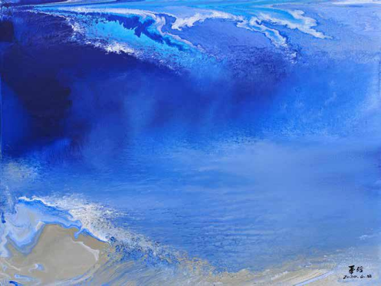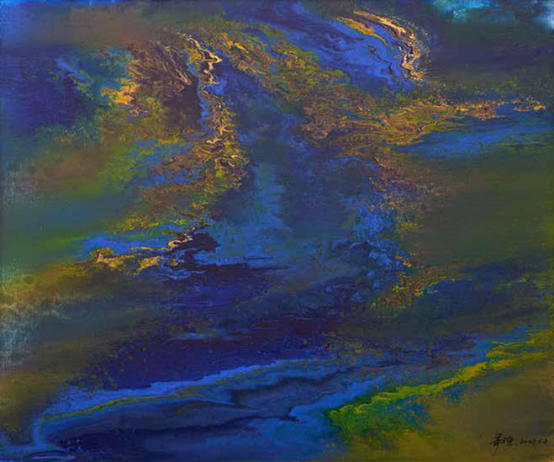 承强在油彩抽象绘画上所取得的成就,得益于其长期的山水画深入学习与中国传统文化的熏陶。中国山水画承载了中国文化深厚的民族精神与审美理想,与中国哲学中核心的精神“道”紧密相连。承强正是在山水画中汲取了中国传统文化的精髓,将自然造化作为自己“神游”的理想天。他的作品既展现自然造化的大美,又表现自己内在的性情与精神,将自己的内心心境与自然物象合而为一。在其作品《云心水性》、《潮涌》中,云水相拥,一动一静,动者翻腾奔放,静者浩渺弥漫,动者益动,静者益静,形成了云随水动、水随云流的卓绝意境,传达出东方哲学天人合一、道法自然之思想。承强的抽象艺术虽源于中国传统文化,但不是模仿前人形式语言与技法,而是基于传统精神上的创新。观看他的作品,其越抽象、越趋于无形,越感觉接近中国传统的绘画思想,他以抽象绘画语言阐述中国传统文化精神。他的抽象艺术是从中国传统文化中汲取营养,融合当代审美气息,最终形成了蕴含中国传统艺术精髓的抒情抽象绘画。