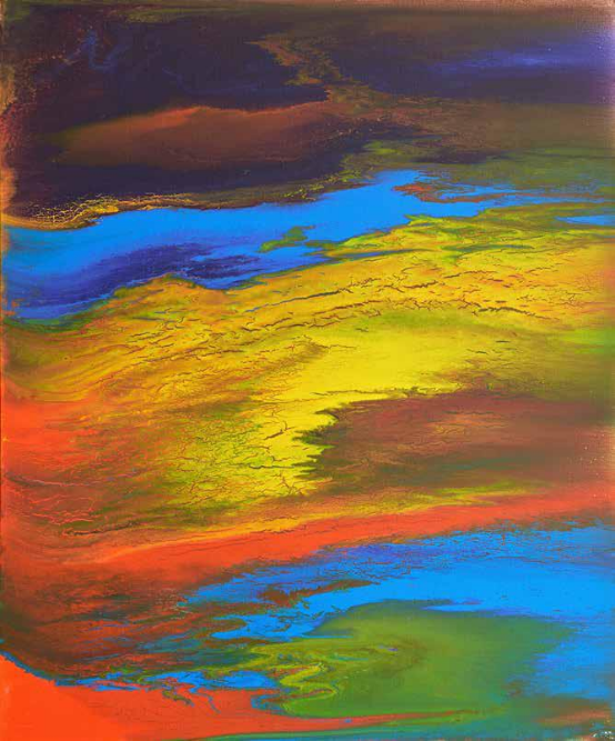 承强的油彩抽象绘画,流彩溢章,浑然奇幻。他的创作有着极大的随意性,自由而多变,驰骋有余,连贯一气,随心所欲而千姿百态,每幅作品所呈现的意境各不相同。观看他的作品,或若风云际会,云卷云舒,广袤、激荡中蕴含淡然的惬意;或若大漠孤烟,长河落日,扑面的雄浑与沧桑;或若星河璀璨,漫天流霞,充满了瑰丽的幻想与浪漫的情怀;或若春雨潇潇,如烟、如雾、如尘,仿佛有诉说不尽的绵绵情思……他的作品跨越了梦幻与现实之间的界限,酣畅恣肆、吞吐大荒,宛如一首首生命的赞歌,让人浮想联翩。