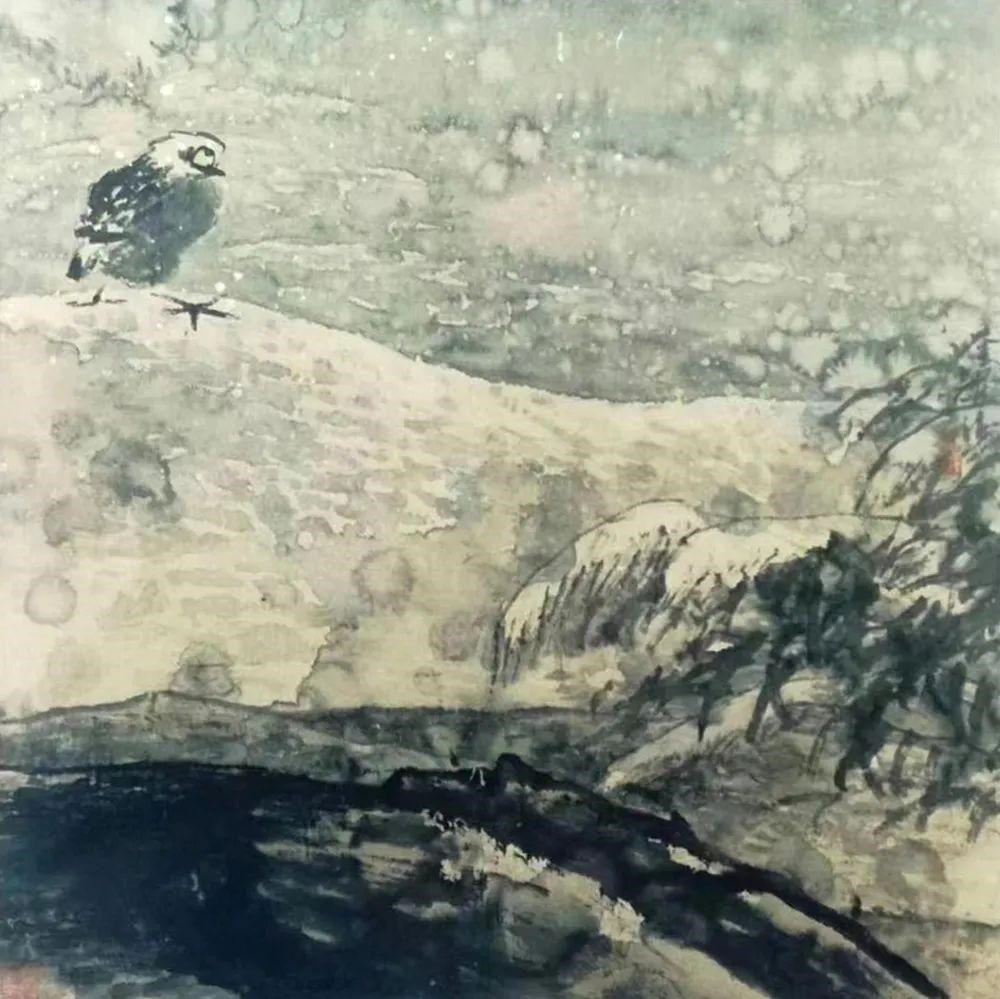 以花鸟画的样式去表现苍茫的境界感觉,是有其难度的,它需要某种突破与超越,用以扩大视野,拓宽内涵与外延,以表现由中国艺术传统而延伸出的生命诗情。我们看到,画家在作品营造的苍茫境界,是凭借了“荒寒”的完美因素的,在审美中的“荒寒”实际上是一种文化品位,虽然也是一种生命情调;比较而言,它显然比明媚妖妍的斑斓、缤纷之感要深刻得多,更具探入生命深层的动人力量。