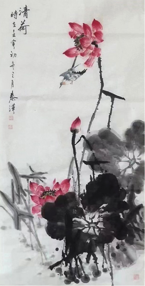 【艺术简历】 刘秦汉,中国美术家协会会员,北京市燕山国画院专职画家,浙江省绍兴市稽山书画院副院长。现居北京,1963年生于河北省唐山市,主攻写意花鸟。先后进修于中央美术学院国画系,中国艺术研究院国画院研究生班,师从张立辰、郭怡孮、赵宁安等先生。 艺术成就:擅长百虫百草,画面精美耐读,有白石笔法之妙趣和精神,韵味自然生动。作品《秋色秋声》入选第十三届当代中国花鸟画邀请展;《万物生长靠太阳》入选第十四届当代中国花鸟画邀请展;《空山新雨》入选“逐梦.威海卫”2017全国中国画作品展;《平安.中国》入选2018国风盛典首届全国中国画作品展;《够不到》入选2018子恺杯第十二届中国漫画大展。 2007年荣宝斋出版社出版《秦汉中国画集》。《人民网》、《中国青年报》、《中国美术家报》、《艺术世界》、《走进书画大家》杂志社等媒体做了相关报道和刊发其作品。